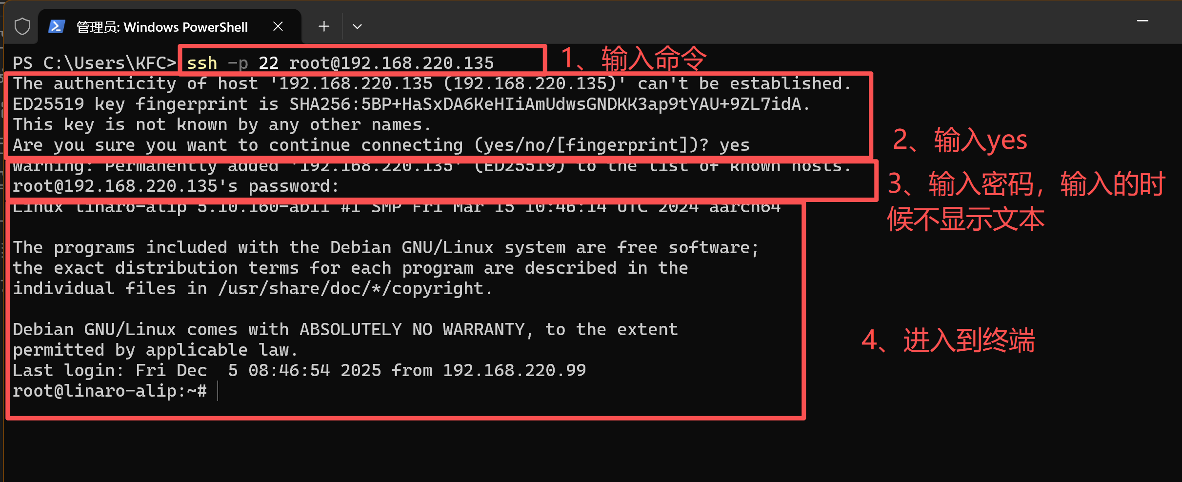 - 输入密码的时候不会显示任何字符
