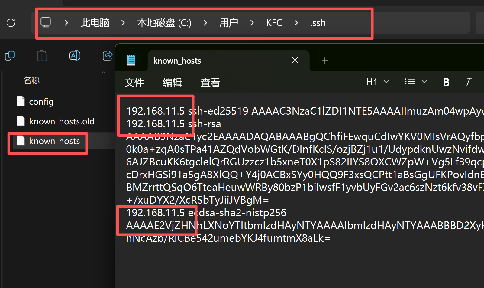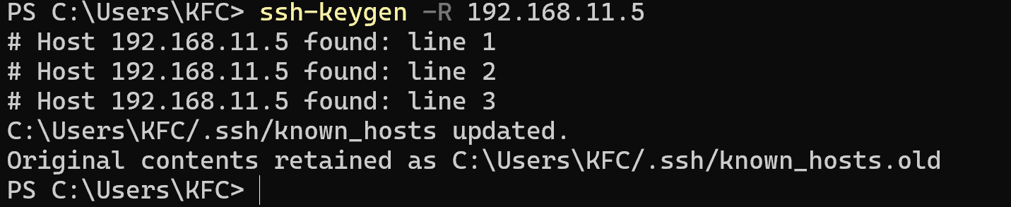 或直接手动删除c:\users\用户.ssh\known_hosts文件下的的对应IP密钥
