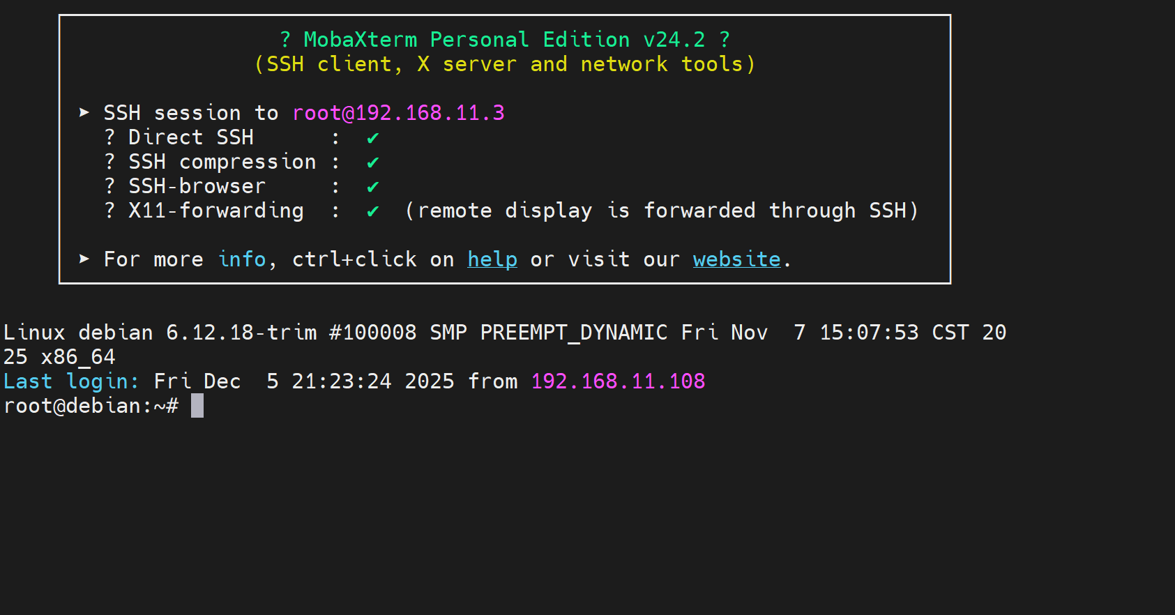 下面以mobaxterm为例进行ssh链接演示